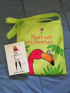 O último livro que comprei ontem foi um livro em inglês no pavilhão da Fnac. Posso estar enganada, mas acho que é o único que vende livros em inglês na Feira. Comprei The Hate U Give, de Angie Thomas, um romance YA contemporâneo inspirado no movimento social americano Black Lives Matter. Na altura de pagar, deram-me este saco verde. Repito, deram-me!