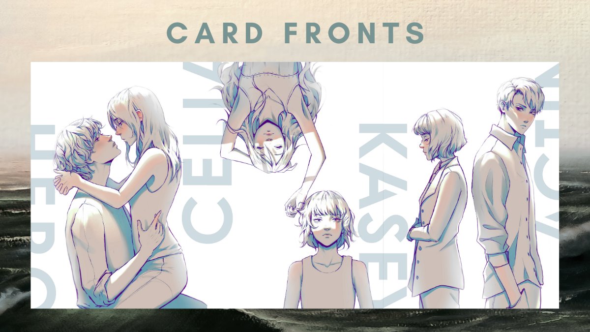 Personagens do livro. Esquerda: Hero e Cee. Centro: Cee e Kasey. Direita: Kasey e Actinium. Artista: Paulina Klime.